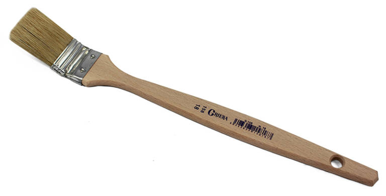 Brocha Curva. La brocha curva tiene una forma algo diferente al resto, por lo que tiene unas funciones diferentes. Este tipo de paletinas se usa tanto por el pintor profesional como particular para alcanzar lugares difíciles como detrás de los radiadores o las barandillas.