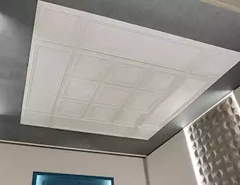 En nuestro Showroom hemos colocado inspiraciones con OracDecor. Un cabecero para un dormitorio combinando paneles 3D y dándole un acabado en color. Pero también molduras con luces indirectas, zócalos, techo….